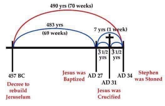 Now back to the 70th week mentioned in verse 27, in the middle of that last week Jesus was crucified and rose again. The Jewish nation now had approximately 3.5 more years to still be considered God’s “chosen people.” Then, approximately 3.5 years after Jesus had died, Stephen, who was full of the Holy Spirit, presented the Gospel message to the Sanhedrin, but they stoned him to death. This was the Jewish leader’s final rejection of the Gospel. Their 490 years was up. Remember Matthew 18:22, how many times must we forgive someone who has sinned against us, “I say to you not up to seven times, but up to seventy times seven!” The Old Covenant community of Jews had their 490 times, or in this case, exactly 490 years, to be forgiven by the final atoning sacrifice of Jesus which “brings in everlasting righteousness” to those who believe, but they refused. God then turned Saul into the Apostle Paul, and Paul was sent to share the Gospel, the “Good News,” to the Gentiles. According to Galatians 3:29, we now get to become the seed of Abraham if we have Jesus as our savior and belong to Him. Daniel 9 is all about Jesus!!! Before those 490 years had passed, the vast majority of Gentiles didn’t have a relationship with their Creator. But God had a plan to redeem us too, a plan that had actually been clearly revealed throughout the Old Testament, and Hallelujah and praise God for His beautiful plan!!